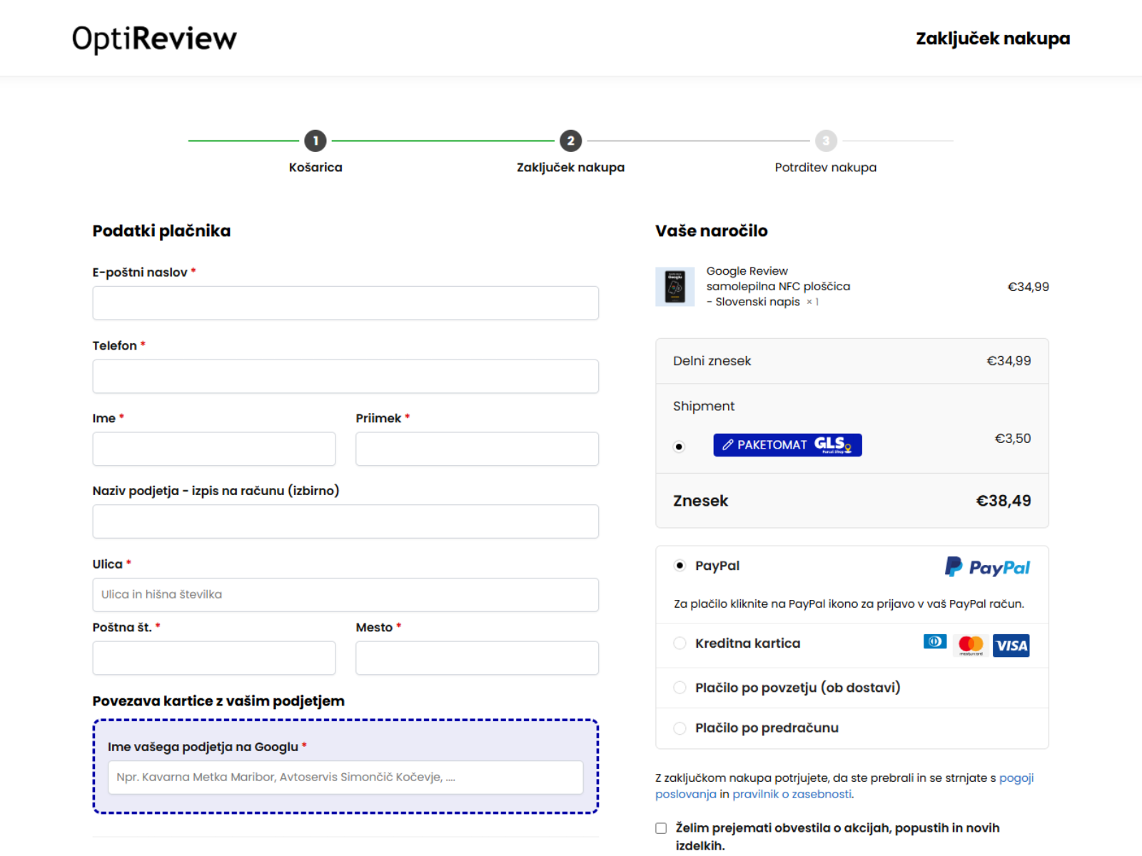 • Integracija plačilnih sistemov PayPal in Braintree (kartična plačila)